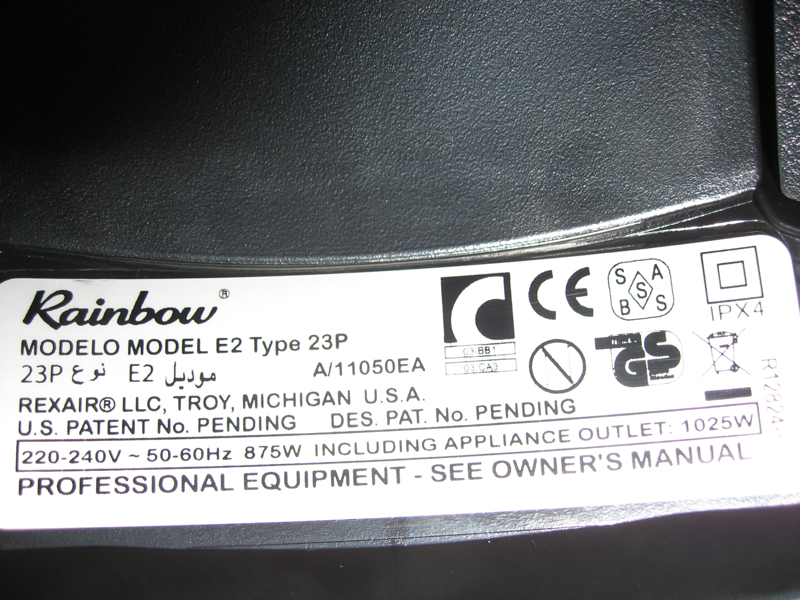 Hier finden Sie die Modell / Seriennummer Ihres Rainbow Wasserstaubsaugers eSeries